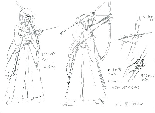 弓道の一連の動作の資料が欲しくて、ちょっとおおざっぱにメモ&模写ってみたの